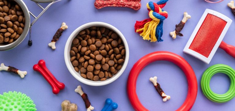 Também inclua itens como calmantes naturais para viagens e sacos de ração porcionados.