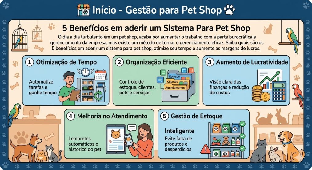 O dia a dia turbulento em um pet shop, acaba por aumentar o trabalho com a parte burocrática e gerenciamento da empresa, mas existe um método de tornar o gerenciamento eficaz. Saiba quais são os 5 benefícios em aderir um sistema para pet shop, otimize seu tempo e aumente as margens de lucros.