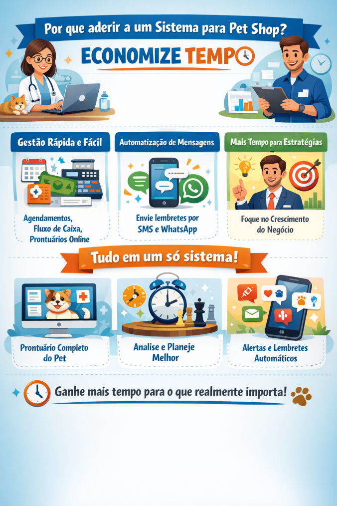 Com um gerenciamento eficaz em seu Pet Shop, como acontece quando se utiliza um software de gestão, a sua clínica economiza tempo e dinheiro, além de ajudar na qualidade de atendimento ao cliente, devido as funções de agendamento e notificações, como mencionado.
