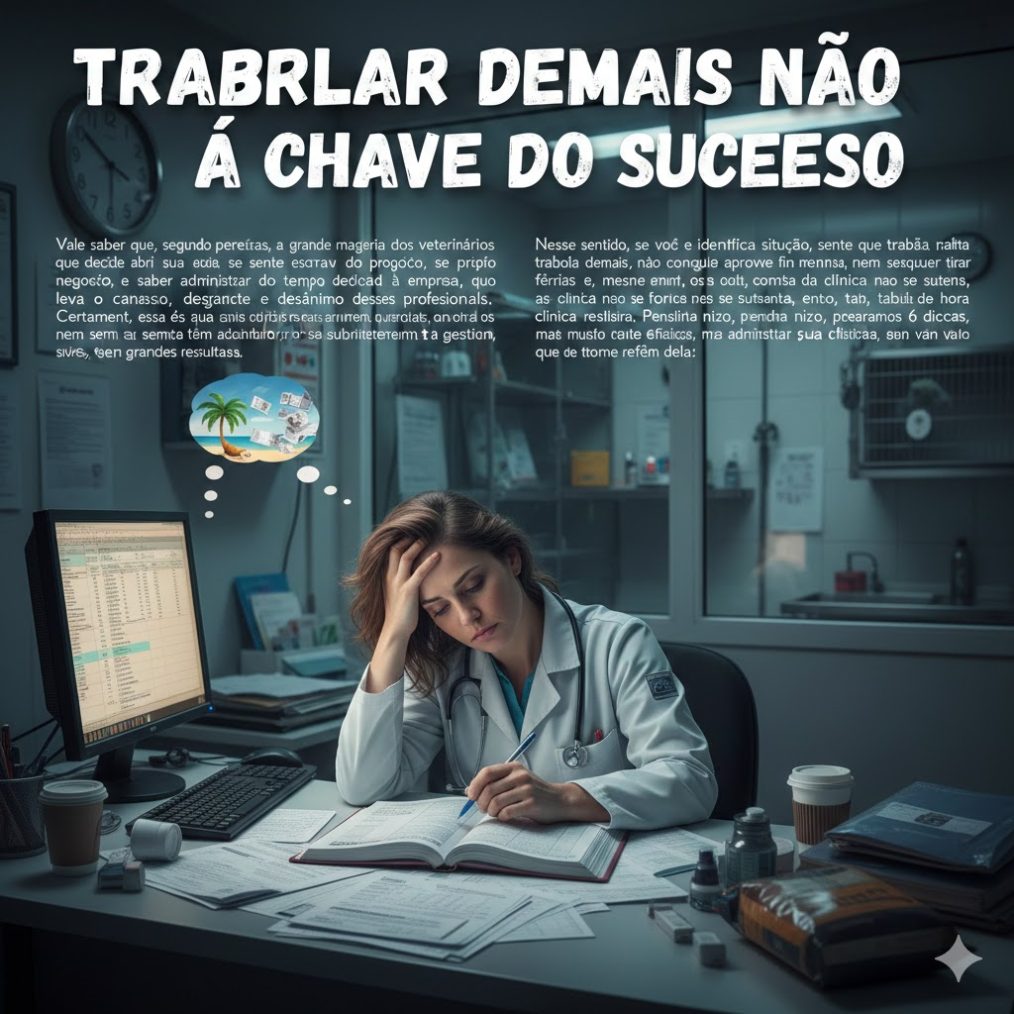 Vale saber que, segundo pesquisas, a grande maioria dos veterinários que decide abrir sua própria clínica, se sente escravo do próprio negócio, e isso por não saber administrar o tempo dedicado à empresa, o que leva ao cansaço, desgaste e desânimo desses profissionais.