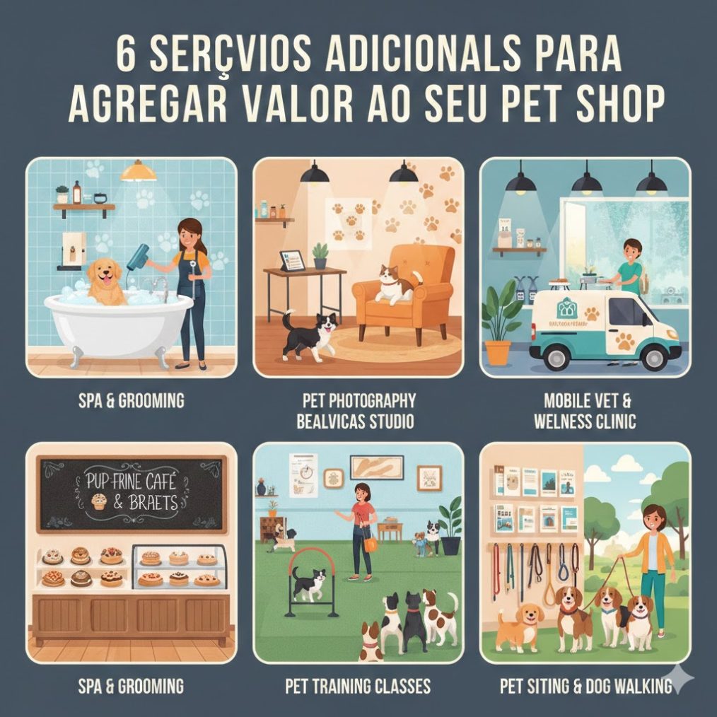 Vale chamar a atenção para o fato de que nem todos os serviços adicionais precisam ser necessariamente oferecidos por você. Por exemplo, se oferecer adestramento e cuidador, uma dica é fechar uma parceria com profissionais autônomos que atendam a sua região. O se trabalho, no caso, seria facilitar o acesso a este tipo de serviço, resolvendo um problema do cliente. A dica, portanto, é procurar montar uma rede de profissionais conhecidos e de confiança para recomendá-los, emprestando sua credibilidade a eles.