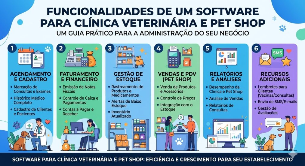 Quais as funcionalidades de um software para clínica veterinária e pet shop?