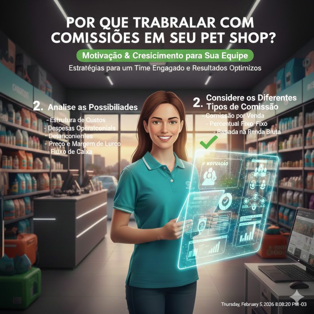 Implementar um sistema de comissão aos funcionários em seu pet shop é uma decisão importante que deve ser cuidadosamente planejada e comunicada aos funcionários sempre de forma transparente.