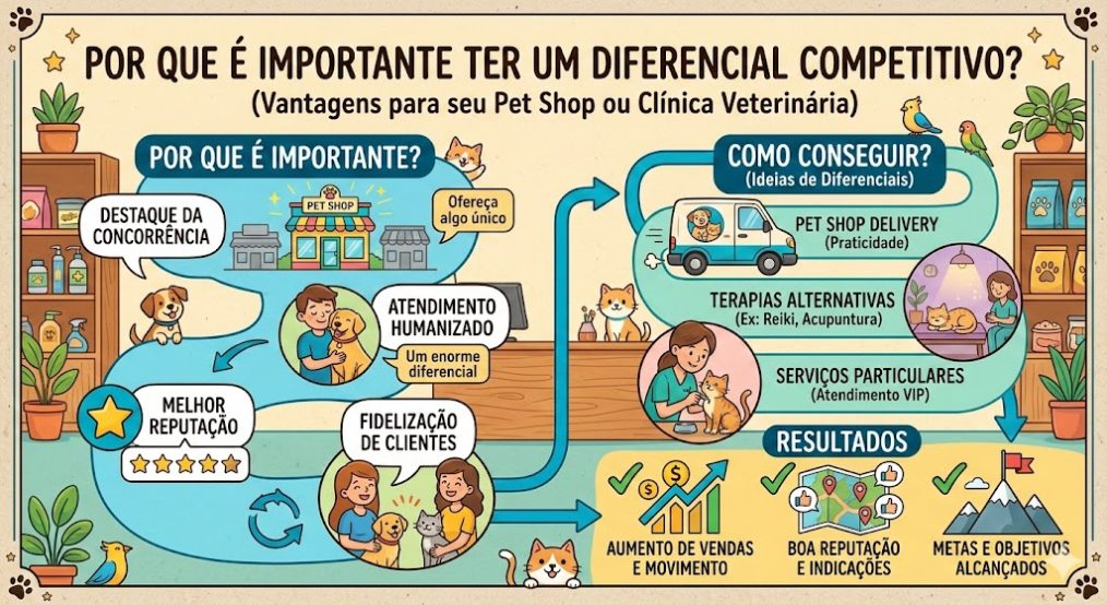 Acredite, em meio a um mercado altamente saturado, como o mercado pet, será o diferencial competitivo de sua empresa que vai fazer com que os clientes optem pelos seus produtos e serviços.