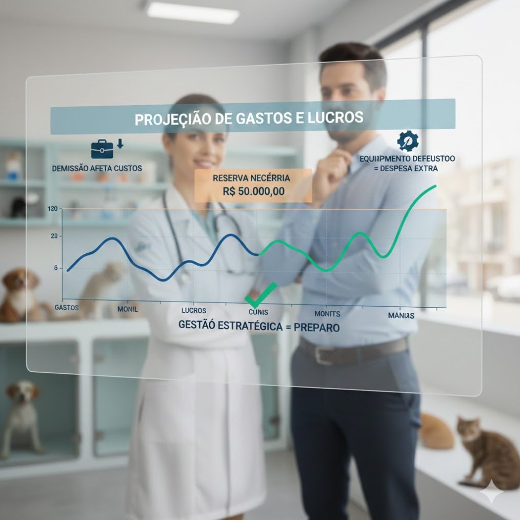 Ao fazer a gestão administrativa e financeira de sua clínica ou pet shop também é preciso fazer uma projeção de gastos e lucros, ou seja, ter uma ideia do quanto sua clínica ou pet shop irá gastar e quanto irá lucrar nos próximos meses, permitindo guardar reservas que serão necessárias caso a receita diminua ou os gastos aumentem.