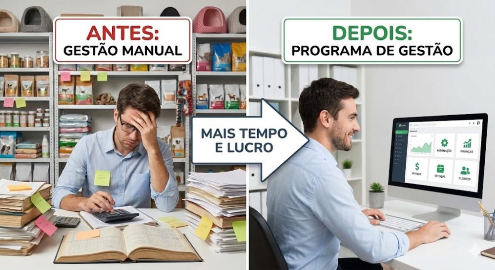 Como sempre fazemos questão de ressaltar aqui, contar com um bom programa de gestão não é luxo, é estar em dia com as tendências. E isso porque é uma ferramenta de software projetada para ajudar empresas a organizar, automatizar e otimizar suas operações diárias. Esses programas são utilizados em diversos setores, incluindo pet shops, para facilitar a administração de diferentes aspectos do negócio, desde o controle de estoque até o atendimento ao cliente.