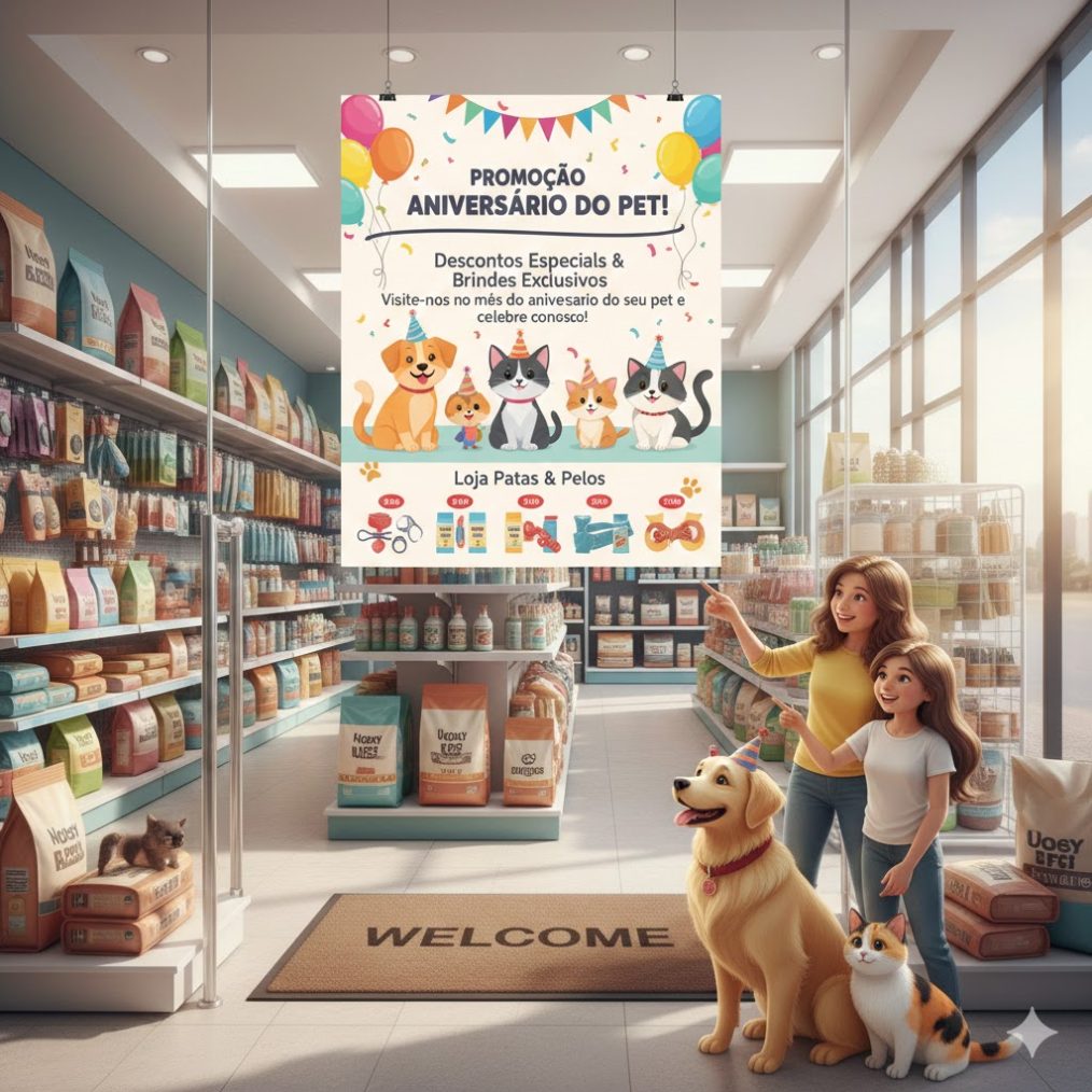 Neste tipo de promoção, a ideia é oferecer descontos especiais ou brindes para os clientes que visitarem seu pet shop durante o mês de aniversário de seus pets. Isso cria um senso de celebração e incentiva os clientes a escolherem seu estabelecimento para comemorar com seus animais de estimação.