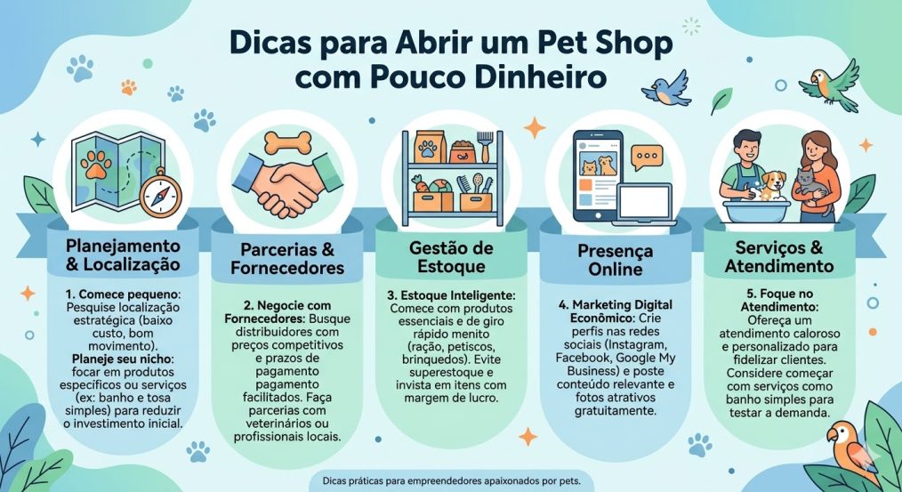 Nessa hora, vale ligar para vários estabelecimentos, negociar condições de pagamento e valores, e veja quais os mais adequados para que possa montar um pet shop com produtos de boa qualidade e bons preços.