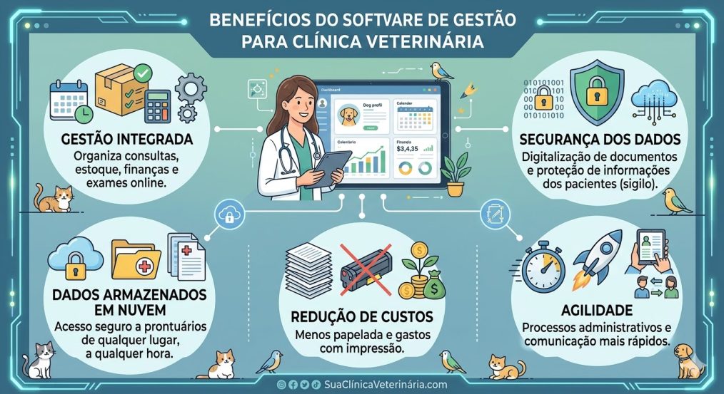 Redução de custos: esqueça aquela papelada toda e os custos de impressão. Ao informatizar sua clínica veterinária, estará garantindo, além de uma rotina mais rápida e prática, também mais economia na compra de materiais de escritório, como papéis e cartuchos de tinta.