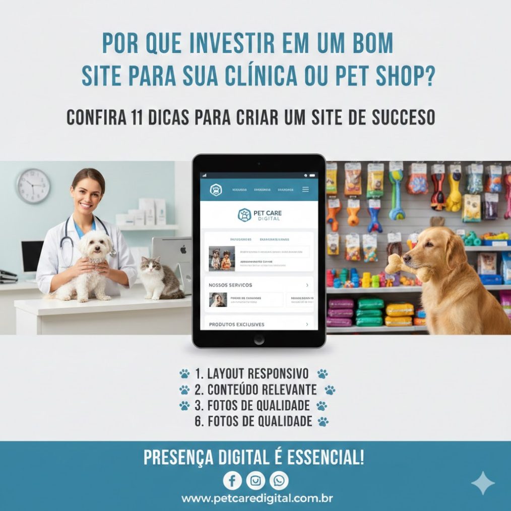 Ter um site profissional transmite credibilidade e confiança aos clientes em potencial. Um site bem projetado, com informações claras e atualizadas, demonstra que sua clínica veterinária ou pet shop é séria, confiável e comprometida em fornecer serviços de qualidade.