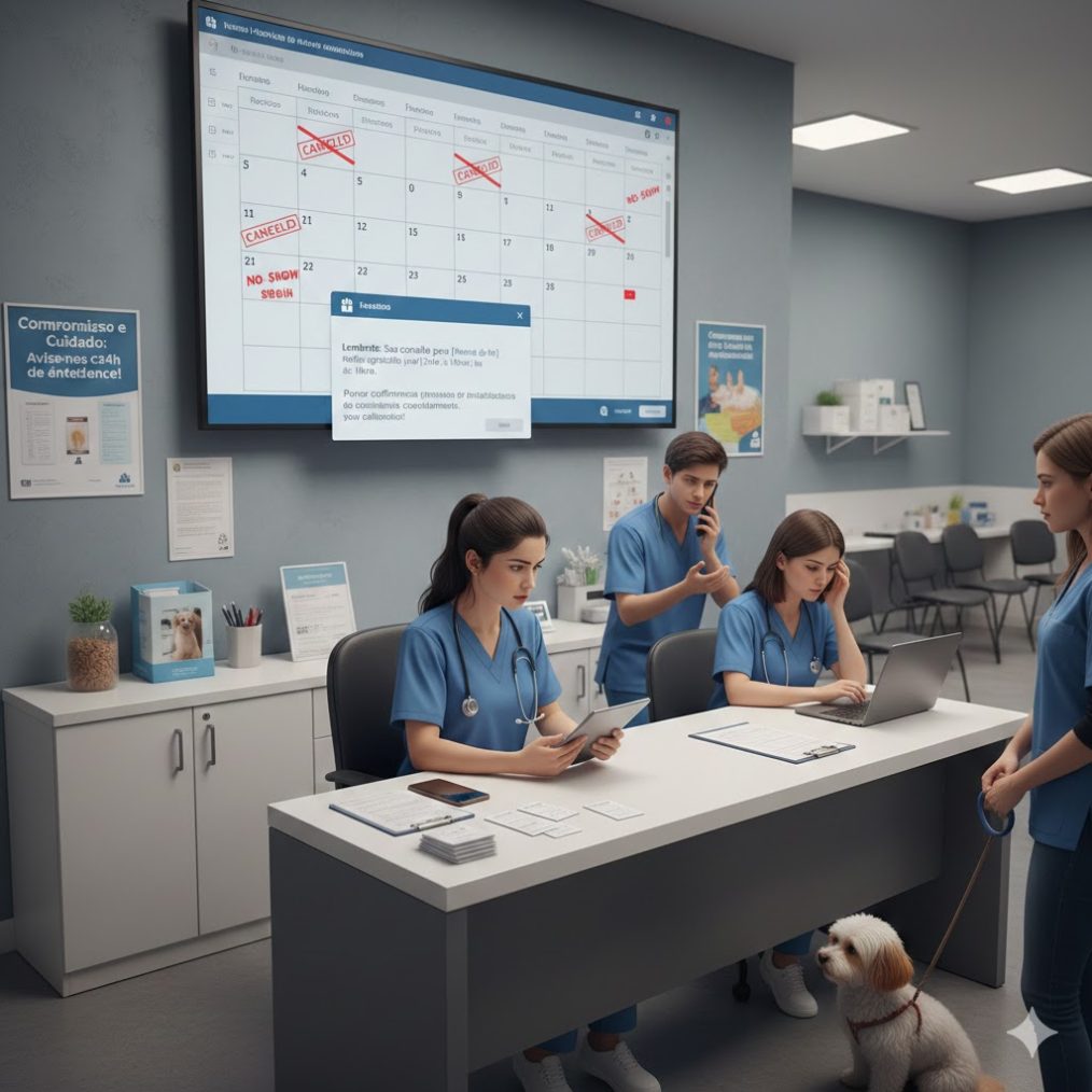 Vale ter em mente que já existem softwares de gestão veterinária que auxiliam nessa etapa, enviando mensagens automáticas, previamente agendadas, pedindo a confirmação para os clientes.
