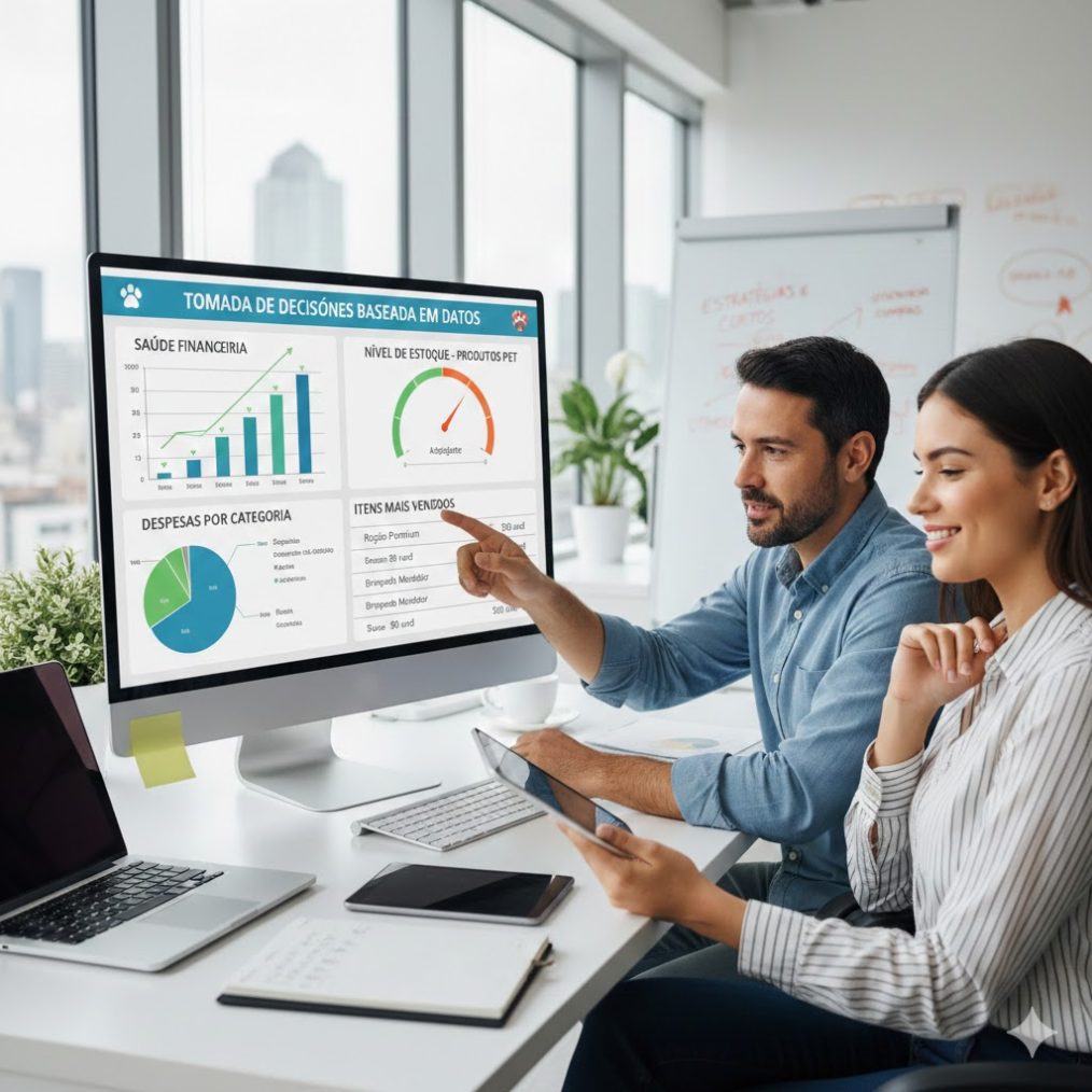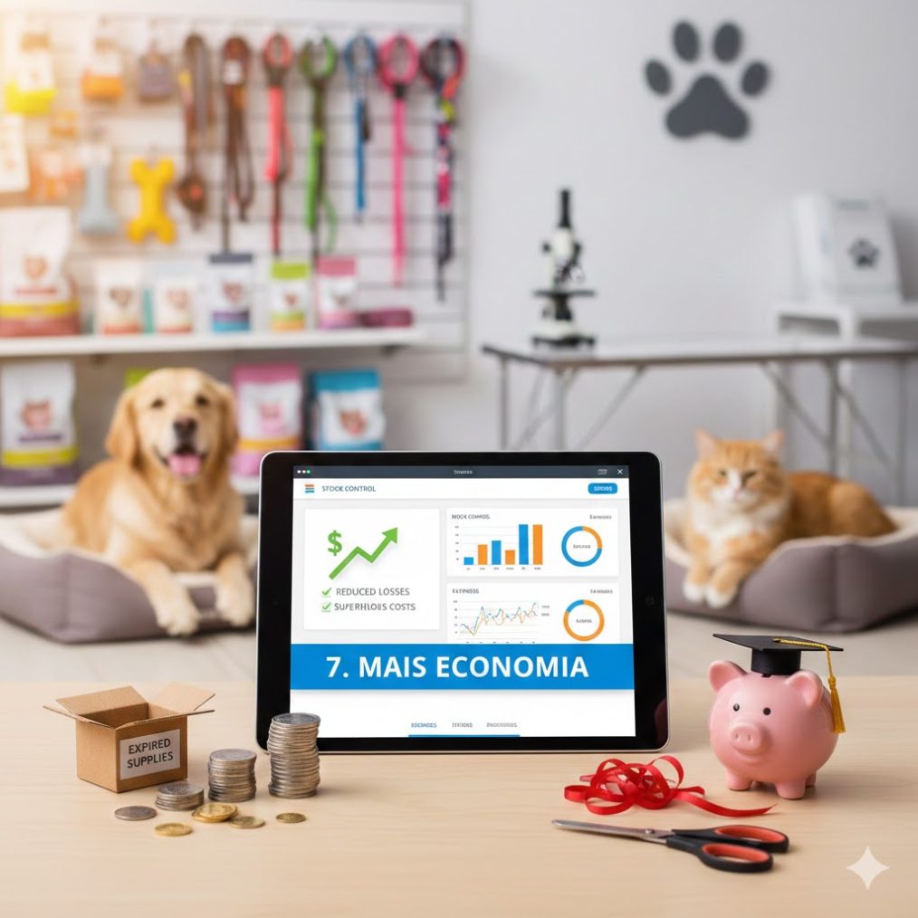 Geralmente, um sistema oferece um painel que reúne informações produzidas pelo estabelecimento em seu dia a dia. Por exemplo, ao vender um produto no pet shop, o sistema reúne dados que permitem ao gestor tanto saber como anda a saúde financeira do estabelecimento como também o nível de estoque em relação ao item vendido. Ao permitir esse controle e o acesso fácil às entradas e saídas, enfim, aos dados da empresa, sem dúvida, isso ajuda a economizar, cortando o que não está dando resultado.